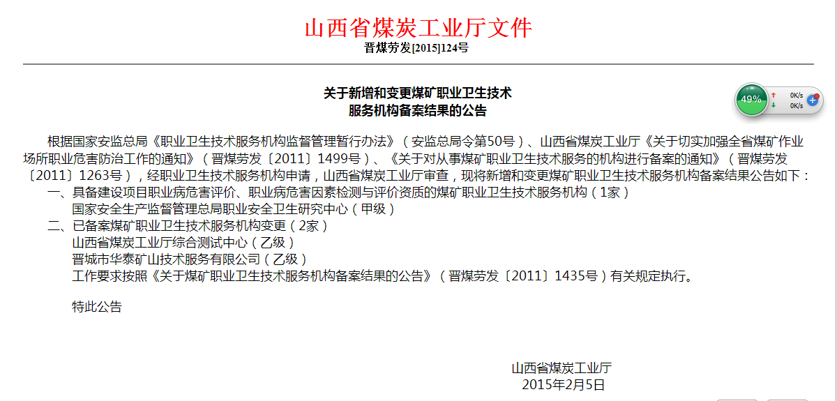 晉城國投華泰科技有限公司(以下簡稱華泰公司)是一家經(jīng)營性國有企業(yè),注冊資金1000.2萬元(由晉城市華泰礦山技術(shù)服務(wù)有限公司和晉城澤泰安全技術(shù)服務(wù)有限公司合并整合組建,國投全資)。公司持有山西省衛(wèi)生健康委員會頒發(fā)的《職業(yè)衛(wèi)生技術(shù)服務(wù)資質(zhì)證書》、山西省應(yīng)急管理局頒發(fā)的《安全評價機(jī)構(gòu)資質(zhì)證書》和山西省市場監(jiān)督管理局頒發(fā)的《檢驗(yàn)檢測機(jī)構(gòu)資質(zhì)認(rèn)定證書》等資質(zhì),設(shè)施設(shè)備、能力、資質(zhì)配套齊全。...【詳細(xì)信息】